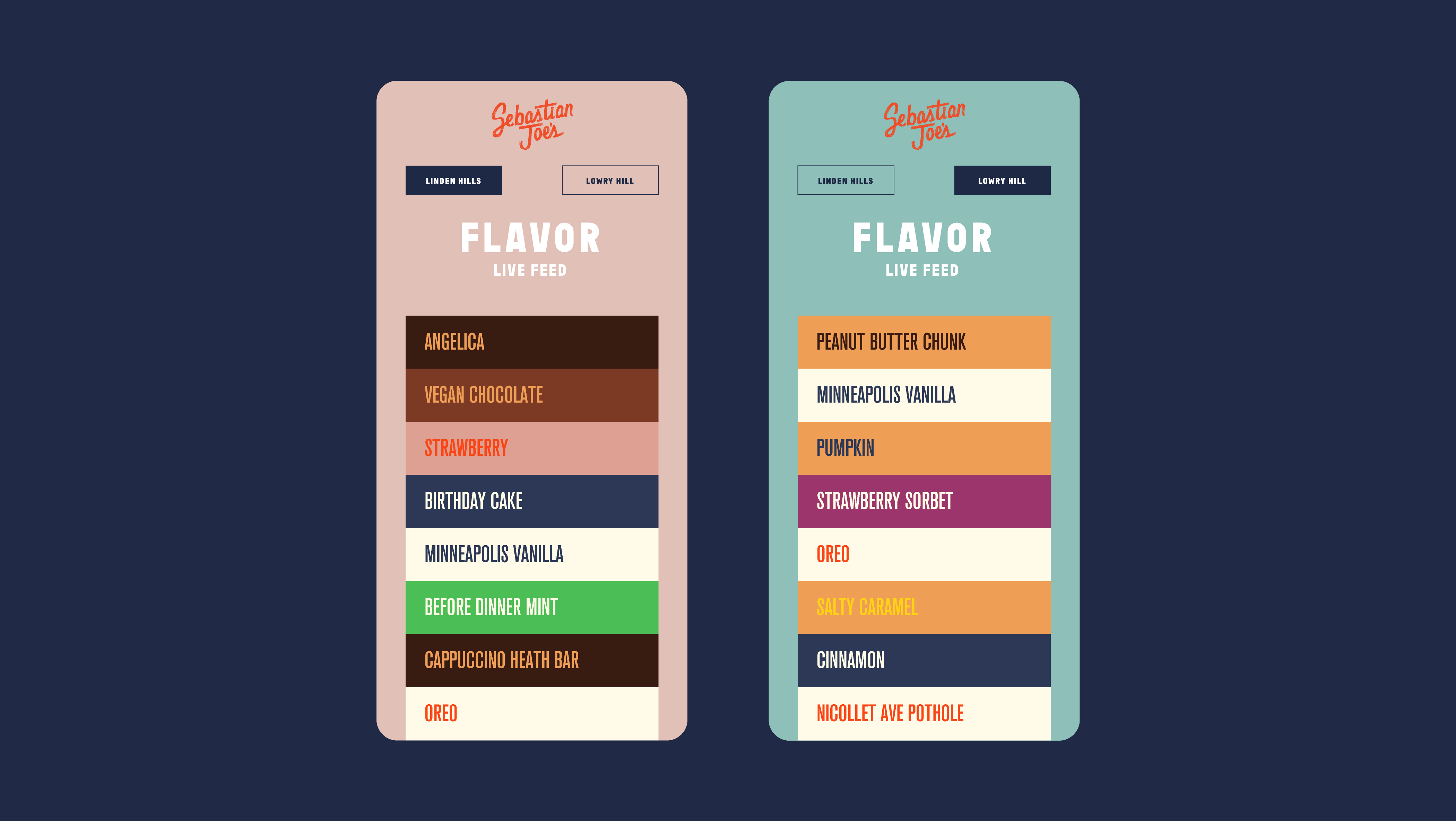 With over 30 years of history, Sebastian Joe’s is an iconic neighborhood ice cream & coffee spot in Minneapolis. Owned and operated by three brothers, this is the go-to premium scoop shop all year round. I worked on creating a cohesive and modern brand that communicated their deep history in the community.